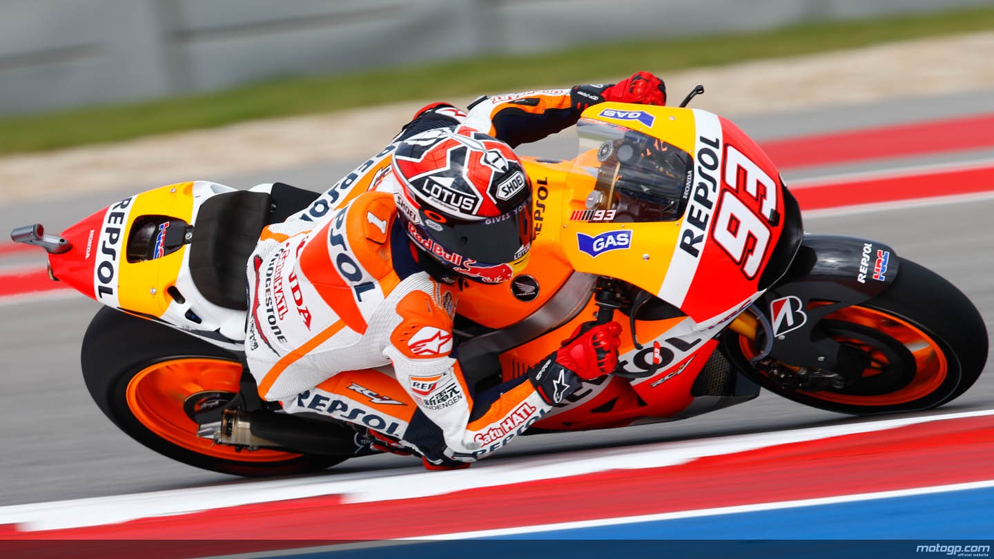 フロントアクセルのライン上に顔があるくらいマルケスは前乗りである。