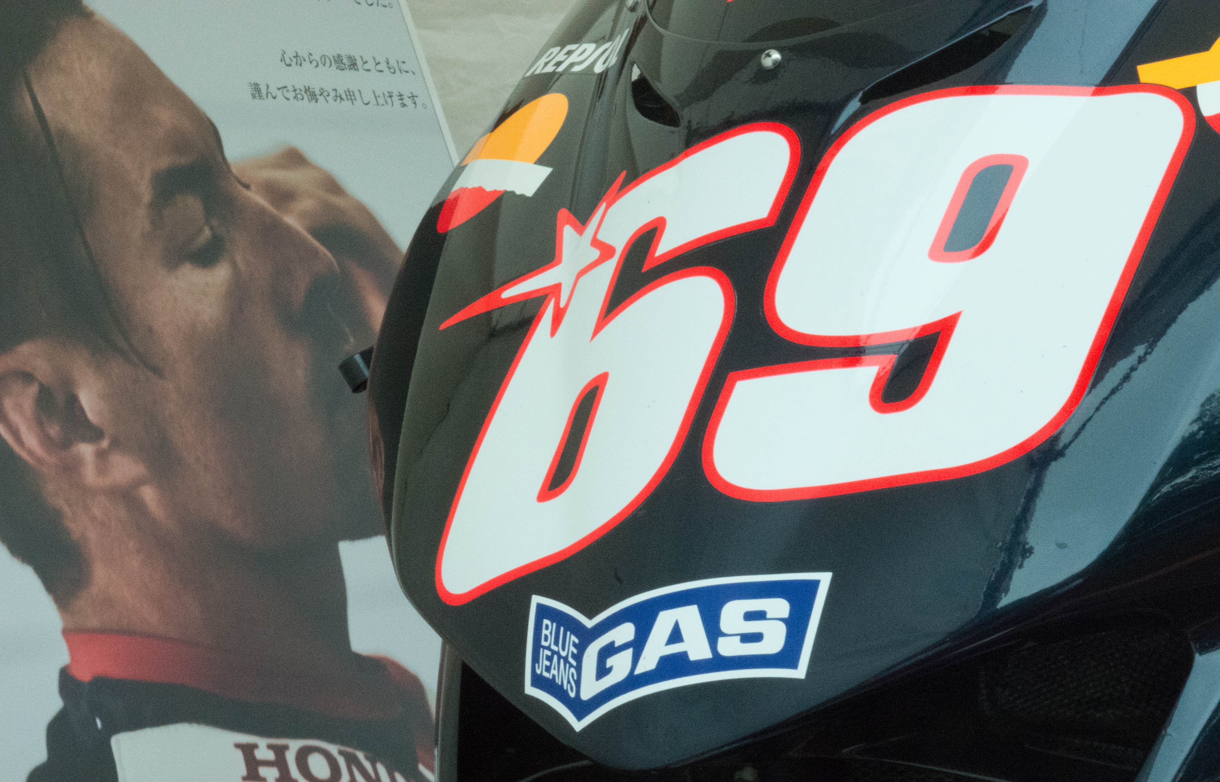 なんと、ロッシが大事な場面で転倒したというのは、あのヘイデンが逆転チャンピオンになった最終戦以来だとか。 もてぎに展示されていたのはチャンピオンマシンでした(5/27-28)。